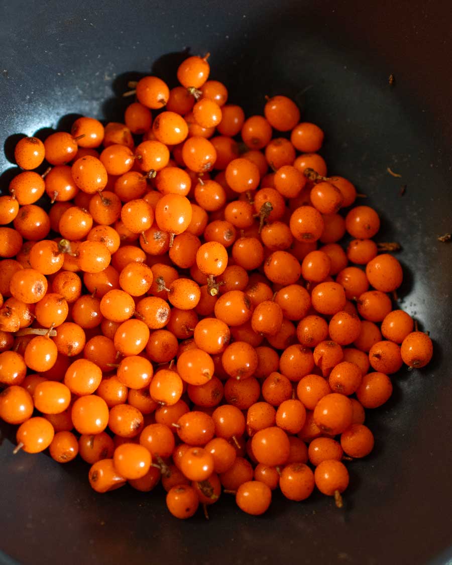 - 1 Teil frische oder getrocknete Sanddornbeeren